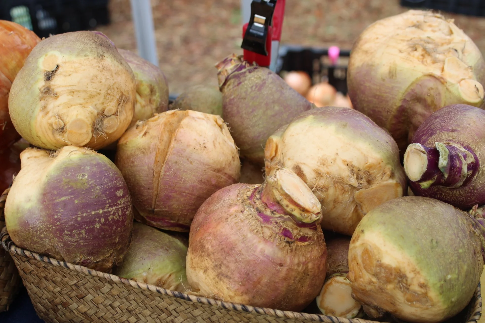 Yet another brassica, rutabagas are a hearty, nutritious root vegetable you can find at the Market in the wintertime. This cross between a turnip and cabbage offers an earthier flavor, perfect for roasting. Tracy from Sugar Hill Produce love to include rutabaga in stews, perfect for some hearty comfort on a cool day.
