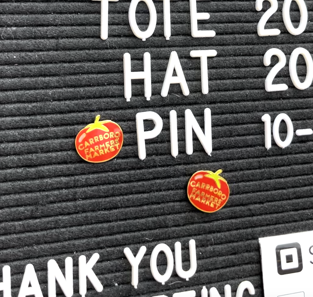 Want to help support the Double Bucks program? CFM has adorable little tomato enamel pins available for a suggested donation of $10-20 at the Information Tent every Market day. All the proceeds from the pins go directly to our Double Bucks program! You can attach them to your CFM tote bag, hat, or shirt, knowing that you’re supporting access to fresh, local food.