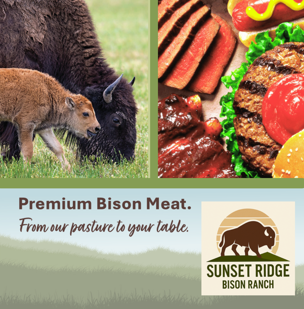 Production Practices - All Sunset Ridge products come from their herd of North American bison and are raised on grass and hay without growth hormones or routine antibiotics. When antibiotics are used, it is only in cases where they are essential to preserve an animal’s life or eyesight. All meat is processed at a USDA‑inspected facility in central North Carolina.